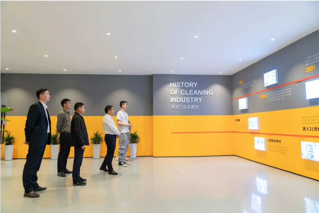潘總一行到達橙犀科技智能產業園,在接待人員陪同下,首先參觀了智慧清潔展廳,了解橙犀企業文化與發展歷程。