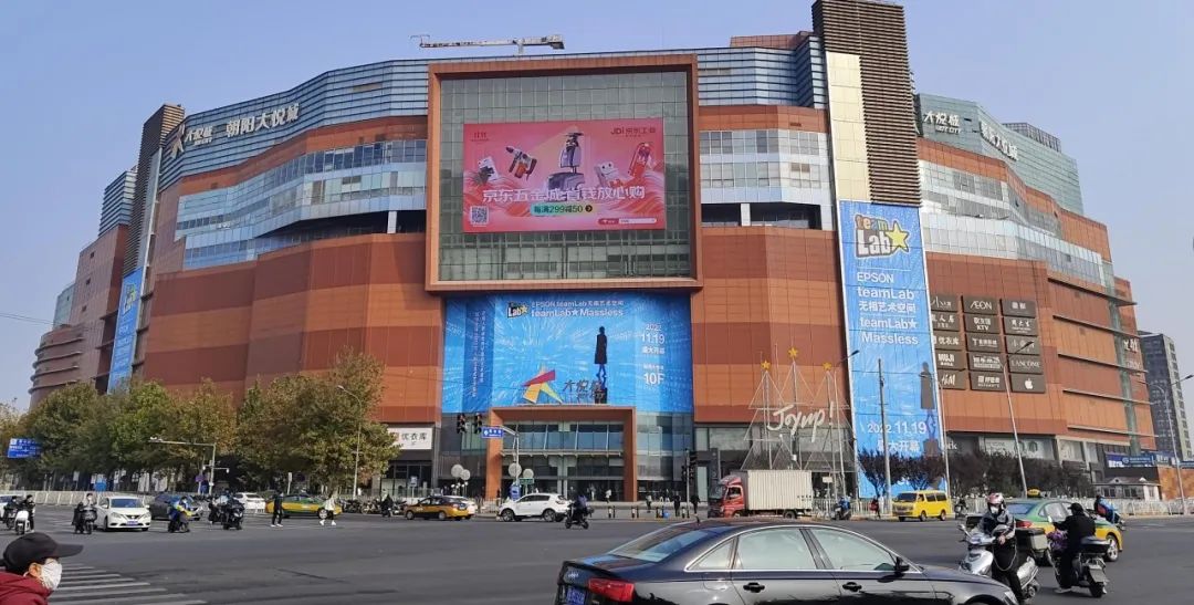 此次投放戶外大牌位于大悅城主樓正門上方外墻,每日可覆蓋人車流量達到100萬次,是北京戶外大牌廣告中的黃金媒體之一,素有朝陽第一屏之稱。尺寸為27.84m*15.36m,可視面積達到427.62平米,媒體刊例價為2500萬元/年。